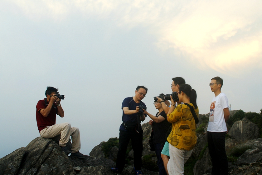 5日上午11时,参加本次采风的一行17人从宁波出发,经过4个小时的车程到达括苍山口。下午15时30分,车辆行至半山腰处。为了更好的亲近大自然,用镜头定格美丽风光,有一半的摄影爱好者不顾天气的炎热,毅然决定下车,徒步走完余下山路。在余下的登山过程中,众人欢声笑语,时而驻足欣赏沿途美丽风光,时而拿出照相机、手机拍摄,互相交流摄影技巧,团队气氛轻松融洽。在一些陡峭难行的路段,大家更是互相帮助,你推我扶,处处体现了友爱的团队协作精神。尽管汗如雨下,但却没有一个人中途放弃,最终于傍晚17时30分顺利登顶,并随后观看了夕阳西下的美景。主峰米筛浪作为中国大陆二十一世纪第一缕曙光照射点,众人自然不会错过在峰顶观看日出的时机。6日凌晨4时30分,当万物仍在梦乡里沉睡时,大部分摄影爱好者不顾昨日的疲惫,便已早早出门选好观景地址,兴致满满的等待日出。在等待了近1小时之后,5时26分,太阳渐渐地从厚厚的云层里探出头来,众人欢欣雀跃,纷纷拿出手机和相机记录这一美好瞬间。在饱览了美丽的自然风光之后,上午7时许,众人怀着愉悦的心情踏上了返甬之路。