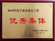 近日,公司被宁波市重点工程领导小组授予“2019年度市重点工程优秀集体”称号。